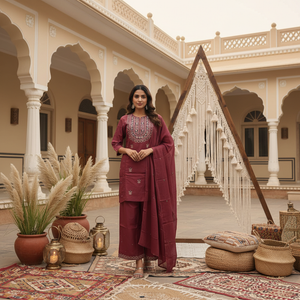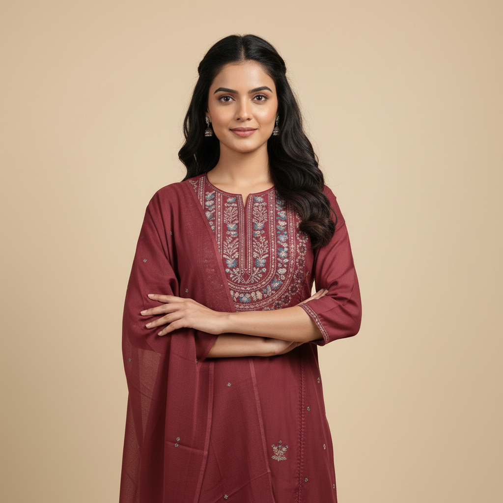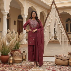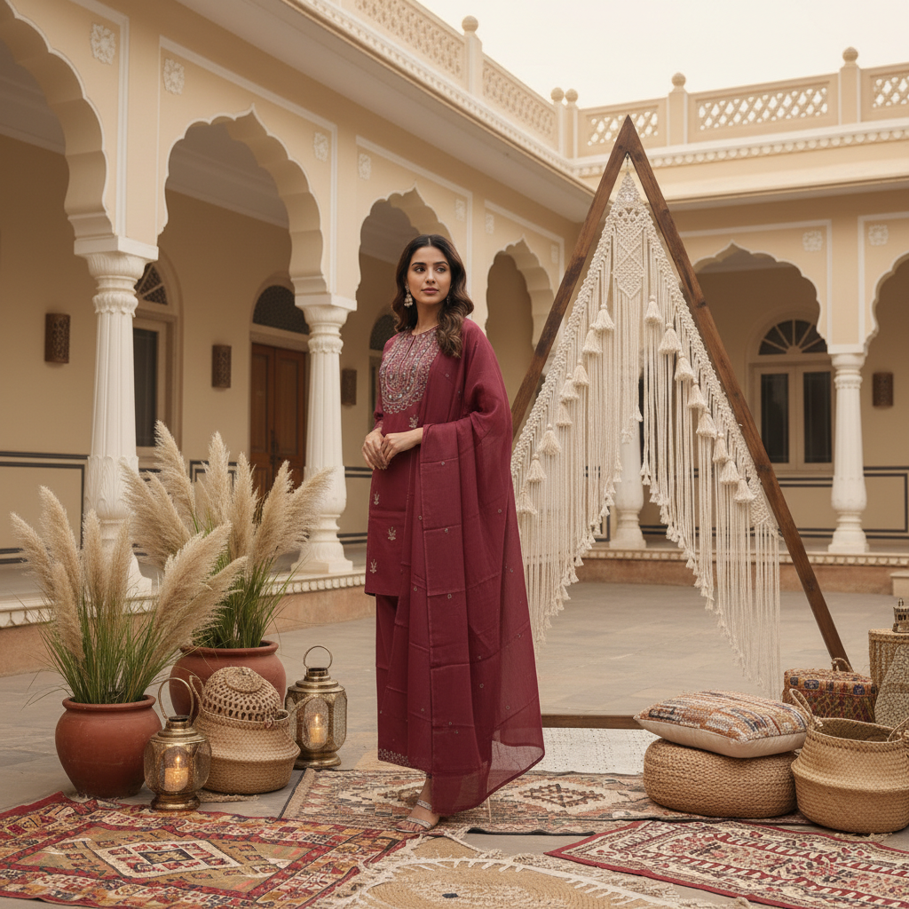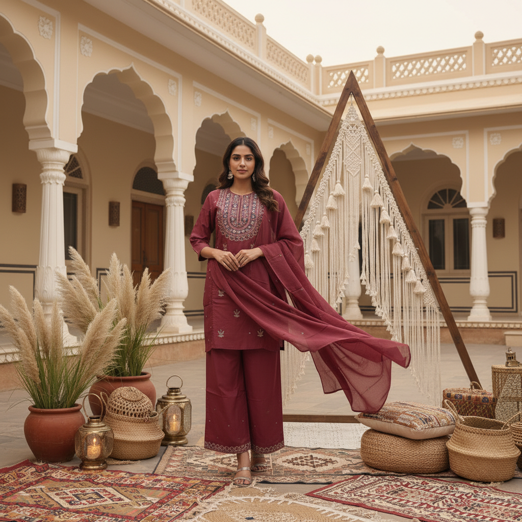 A relaxed cotton palazzo set featuring a chic short kurta for modern ethnic styling. Easy, breathable, and versatile—perfect for everyday wear and casual festive looks